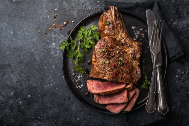 Beef production is very water intensive. Producing just one kilogram of beef requires over 15,000 litres of water. 1 Meaning, 3,000 litres of water are needed to produce one 200-gram dinner steak. This is equal to 6,000 bottles of water (at 500 millilitres per bottle).