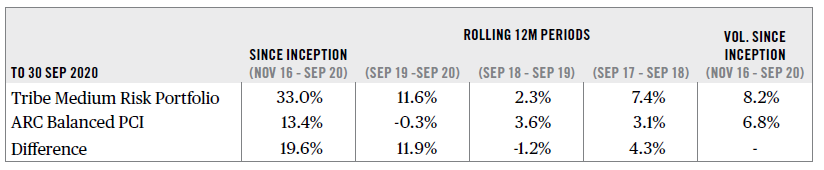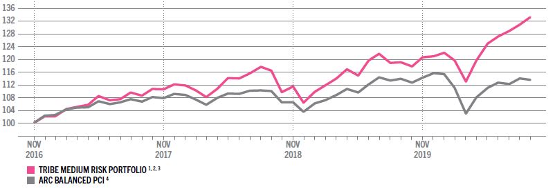- 3 Returns are calculated net of Tribe’s management fee and third-party fund costs. Dividends are paid on an accrued basis